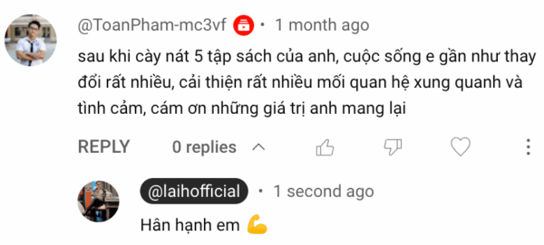 Cho mình cảm ơn anh Lai. H nhé. Nhờ bộ sách này, mình đã và đang từng bước chinh phục thành công Cô gái mà mình sẽ chọn làm Vợ tương lai của mình.